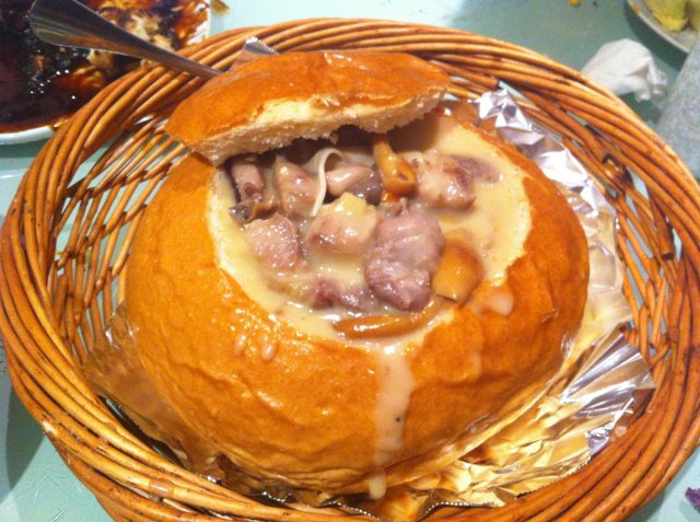 面包鸡:选择的口味是浓香的不是咖喱的也很好吃,特别的香浓,里面的鸡肉也很大块,好吃的。