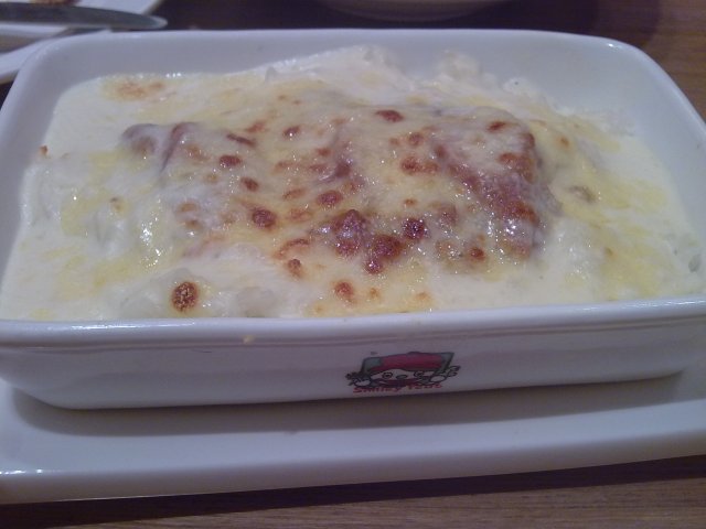 @香辣肉酱焗饭,这个其实我一直蛮喜欢的,不过他们家的肉酱不够多,而且也不是辣的么。索性就叫意大利肉酱焗饭好啦,要是芝士味道能更浓一点就好了~