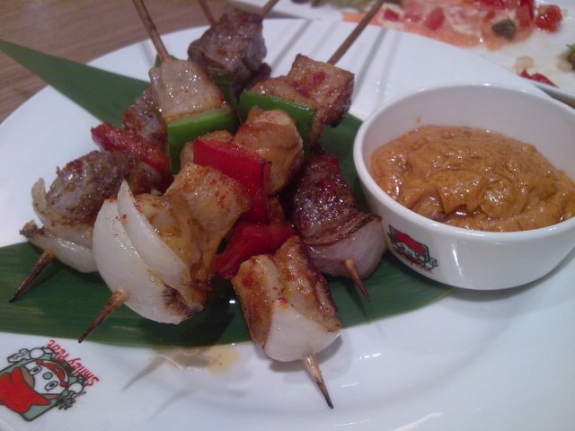 @牛肉卷,这个好像是特地搞出来给我们试吃的,还没上菜单呢。这个牛肉不错,里面包了金针菇,辣椒丝和洋葱丝。感觉里面的味道有点淡,外面沾了那种黑胡椒酱倒还不错。不过我觉得味千拉面那里的牛肉金针菇卷味道更好些,就是材料不好