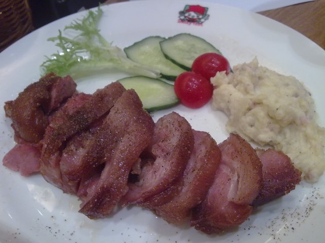 @巴戈利亚咸猪手,这个应该是一道德国特色菜吧,咸猪手还是蛮好次得~~就是离我距离太远了。。。我只好吃了几块。旁边的土豆泥味道倒是很不错诶,他应该把土豆泥专门搞成小食,哈哈