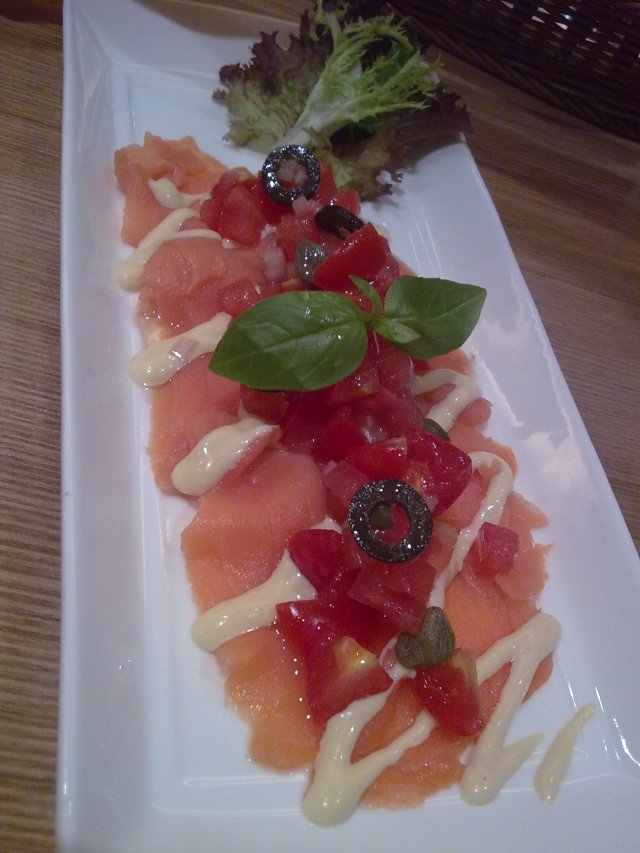 @柠檬三文鱼卷,这个实在没看出来是卷,也没吃出来有柠檬的味道。不过里面那个色拉酱味道倒是不错,不过三文鱼么般般啦,主要是我也不喜欢吃生的。但那时候我实在太饿了。。。就吃了好大的两片。。。其实我想吃两片小的呀。。。