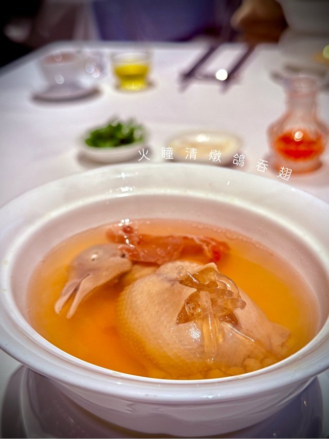 🖍️ 複雜嘅手工菜🌟鴿肉嫩滑,翅針柔韌帶膠質😍琥珀色湯汁超鮮甜!潤喉回甘😋