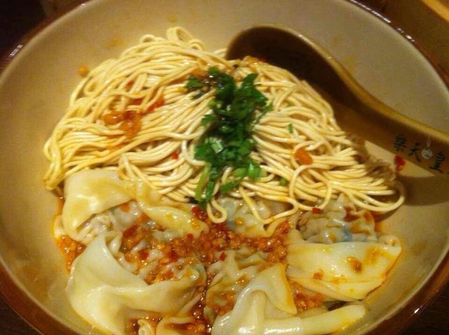 四川抄手拌面:和抄手一样,多添加了些面而已,味道更加鲜辣些,面吃口比较有弹性顺滑的,吸收了酱汁的味道,更加有嚼劲了哟