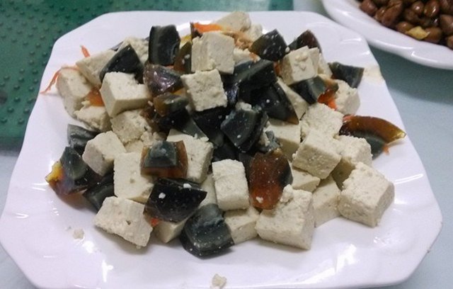 这道凉菜虽然各家都有,但是味道却千差万别。他家做得一般,不算难吃,也不算好吃的。里面的皮蛋切成了小块,我感觉不如大块的吃着过瘾。豆腐倒是很鲜嫩,味道比较清淡。