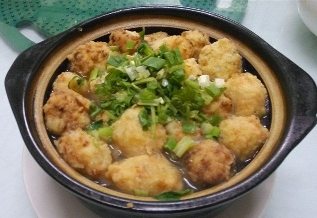 这个菜比较失败,丸子是素的,泡在砂锅里容易碎,吃起来一点儿感觉也没有,而且味道不好。下边是细粉丝,也没什么味道,而且汤里应该加了胡椒粉,个人非常不喜欢。