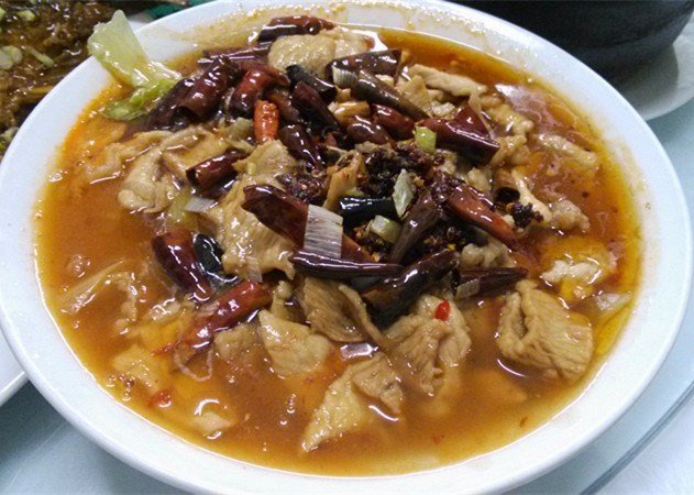 又是水煮肉,各家做得味道差不多,他家的看着那么多辣椒,其实不辣,分量比较足,算是实惠的。大家还挺喜欢吃,最后一扫而光了。