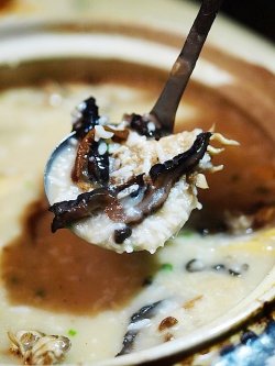 潮州的砂锅粥是这里的招牌,人多就选了2款。一款海鲜粥,里面的食材可以自己搭配,点了膏蟹、干贝、基围虾,都是海鲜怎能不鲜,粥熬的很细腻,虾壳熬汤吊出来的粥底,喝起来就是一个酣畅伶俐。不过我更加喜欢八珍菌王粥,一般都是山珍再海味,这里推荐先喝海鲜粥再吃菌王粥,味道有个层次的递进,鲜的让眉毛落地啊。里面的菌王下足猛料,有很火的松茸、黑虎掌、 榆耳、 牛肝菌、 黑松露、 大红菌、 猴头菇、 天山雪莲熬制而成,带有中菌菇特有的油润香味,舌尖上的美味。