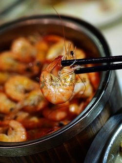 桑拿虾有看点,很新鲜的虾在木桶里面等着桑拿,随着吱吱的冒烟,虾壳的颜色愈发鲜艳了,肉质很弹,下面的汁水还有点小辣,蘸一下会更加入味;