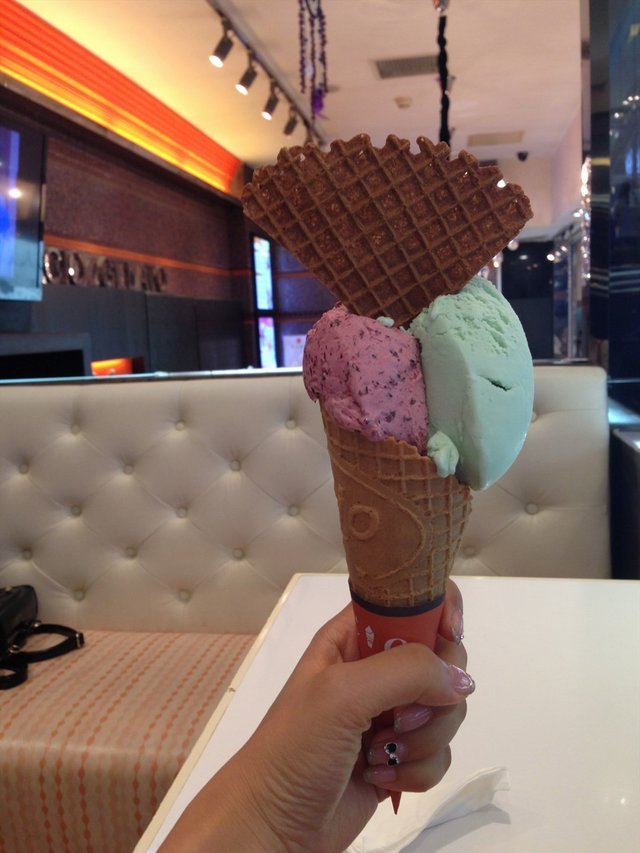 选了脆筒的双球。好像价格是38元。记不太清楚了,忘了拍照。