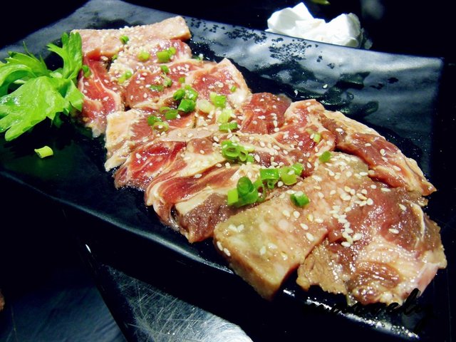 这些烤肉事先腌制过,烤过之后吃起来很嫩很Q弹。