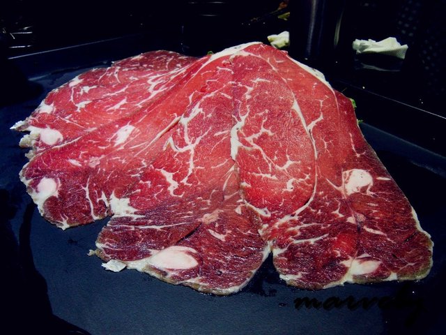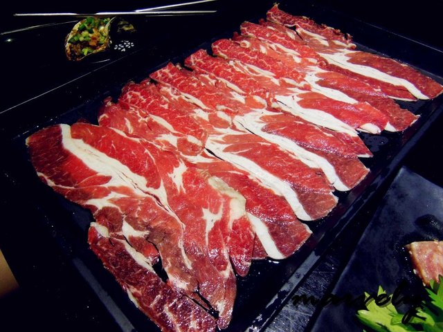 进口雪花肥牛,涮物,在火锅中稍稍涮一下就可以吃了。