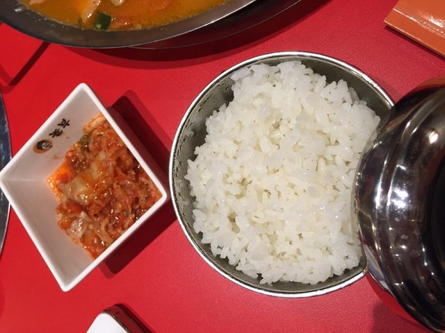 接着就上了乐伯部队锅,料很足,里面香肠、火腿肠、方腿、肉、年糕应有尽有。