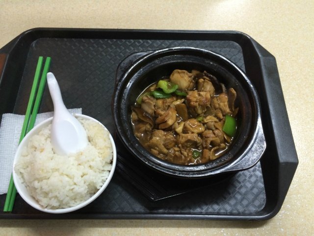 因为是小店,店铺倒不是很大,收拾的很干净,也很温馨,很不错,赶紧去点餐吧,都饿半天了。我本来想找一下收银台和大厨那块的,可是怕被人说,就没有拍。因为就我一个人吃饭,所以点了一份普通的黄焖鸡米饭,15块,
