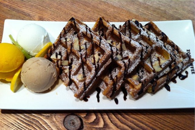 :)冰激凌华夫饼,夏天吃这个最凉爽了,一口松饼搭配甜美的冰激凌,过瘾。