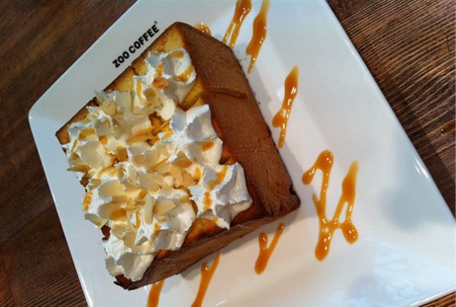 :)蜂蜜奶油土司,口感不同于松饼,上面的奶油花很美,蜂蜜和奶油完美的结合。