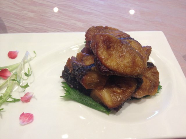 【香煎银鳕鱼】还没小孩子的手掌大,这样一点点的就要98元大洋,着实抢银子的说!本以为鳕鱼的肉质很软,但这块很硬,里面还有没化开的砂糖粒。
