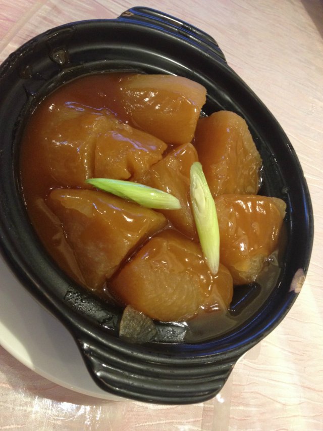 【高汤萝卜煲】据说也是高汤炖出来的,萝卜很酥,但味道不香,萝卜里的筋比较多,感觉上有点糠掉了,水分不大。