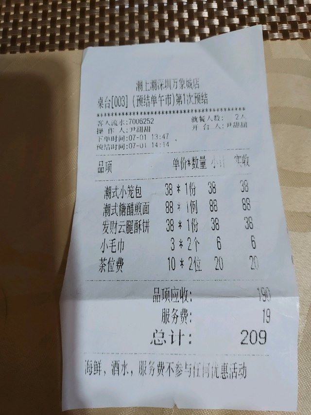失驚無神,人吔71參加免费活動,我就北上,目的地萬象城,一出地鐵露天,書城,再行入去,第一棟,全是食肆,地下韓國食店,多年青人排隊,不是我杯茶,又行吓兜下,入咗大商場,大名牌店,有餐廳指示,其中就是潮上潮,跟住指示上上落落,問吓,终於在一幢獨立小樓找到,見到一個6-7呎紅色旗抱接待小姑娘,看過餐牌,點心约$40左右,合適,其實食完離開時候,在剛剛地鐵站出口直入巳見到該小樓。