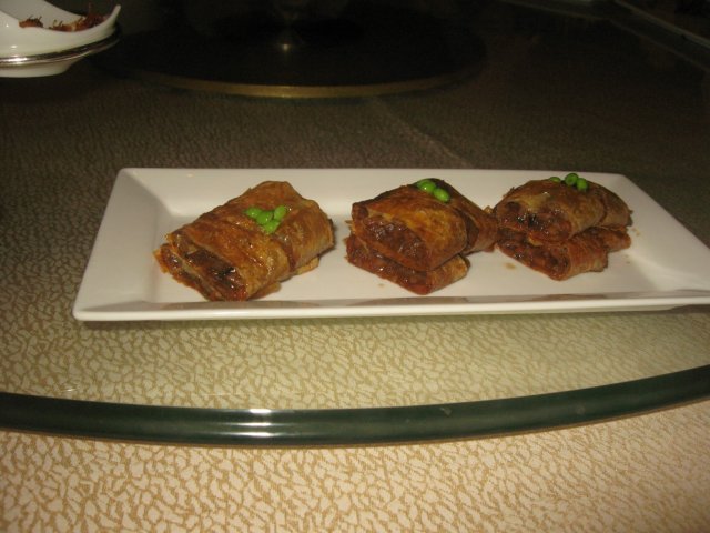 素鸭,外面裹的是豆腐衣喜欢,里面还有各种菌菇丝神马的,蛮鲜美的说。