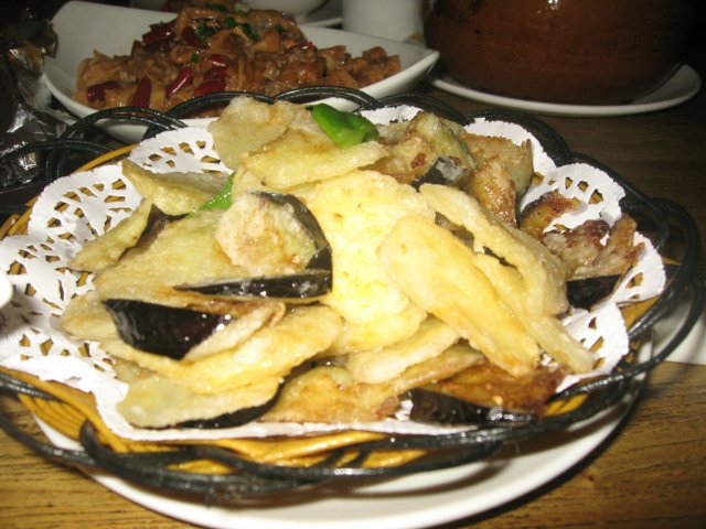 地三鲜,跟东北菜馆里的有些不同,我怎么觉得搞得跟天妇罗一样,茄子、土豆、辣椒裹了粉炸的。