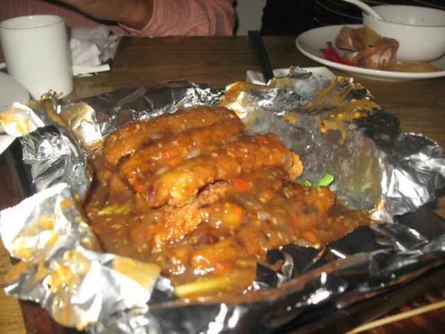肉糜豆皮,忘了具体名字了,豆皮很好吃,软软的,那种豆捞烫好了的豆皮的感觉。