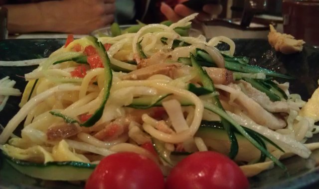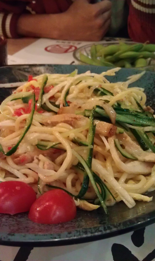 周末中午去的人并不多。例牌点了份汤面,一份凉面,一份毛豆,一份沙拉。他家现在开始做便当了,价格26-28左右,内容丰富,应该算是不错的工作午餐选择。