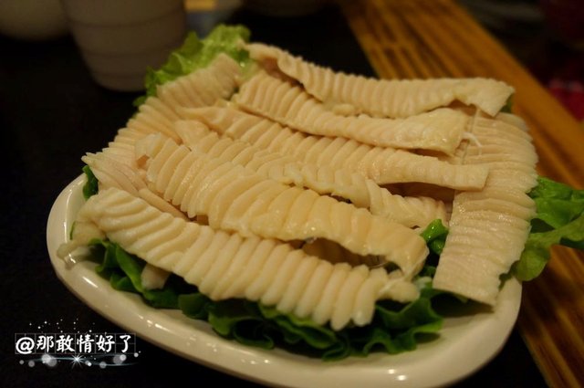 鹅肠,比鸭肠宽,咯吱咯吱地脆!涮两下就出来