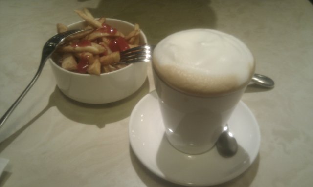 双子座咖啡 cloudplat等级42013-08-108 浏览 关注 来这边看电影,等待期间看到这家小店就进来做做,这家店的位置挺偏僻的,要不是等着满处逛也不会看到。可能生意不是太好,所以没什么人,而且居然还提供酸辣粉,感觉有点不伦不类。要了薯角和咖啡,感觉薯角就是薯条,可能叫法不同。咖啡味道有点淡,做的还是挺漂亮的。以上食记乃用户个人意见 , 并不代表OpenRice之观点。赞好分享双子座咖啡 双子座咖啡吧(安贞店) https://s.openrice.com/KtLT1m0ngK600检举 张贴 评分3味道3环境3服务3卫生3抵食人均消费¥20