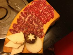 【韩式雪花肉】很新鲜很新鲜的肉肉哦,摆在一起红白相间,真的很像雪花,让人食欲大增,木质的小托盘配个香菇,档次立刻高级起来。肉质很嫩,稍微烤的时间久一点,也不会老,没有丝毫的难咬。黄酱蘸料也老赞的哦!