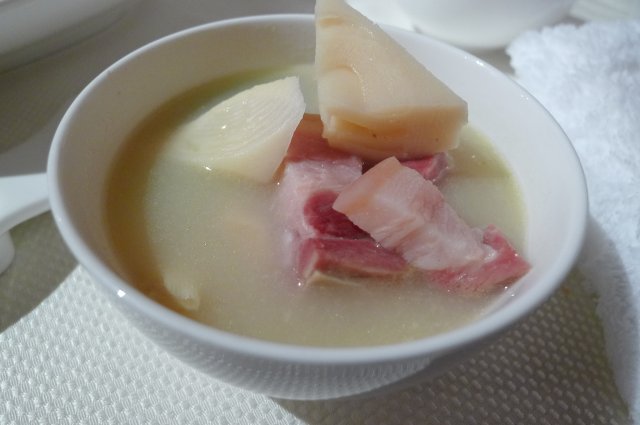 @腌笃鲜/68块,一大锅啊,服务员主动帮我们每个人都盛了一碗出来,汤的味道还不错的,蛮鲜的,就是里面的咸肉啦实在是有点咸,而且有点肥,笋也不是很好吃,所以我就喝喝汤了,里面的东西我都放弃了