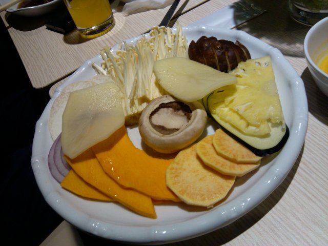【什锦蔬菜】这盘除了蘑菇还有土豆、南瓜、茄子、菠萝等蔬菜拼在一起,不过是在另一个烤盘中烤的,我们桌吃的是蘑菇拼盘,感觉如果自己点菜的话就会点什锦蔬菜的,口味搭配的比较好