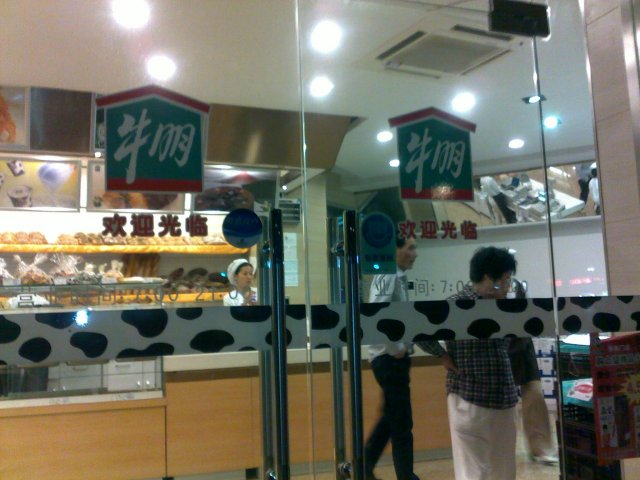 一进门靠门窗的地方是卖面包的,什么肉松面包,奶油毛毛虫,披萨之类的,都是属于面包一类的,不贵,比较的平民化都在10元之内呢!