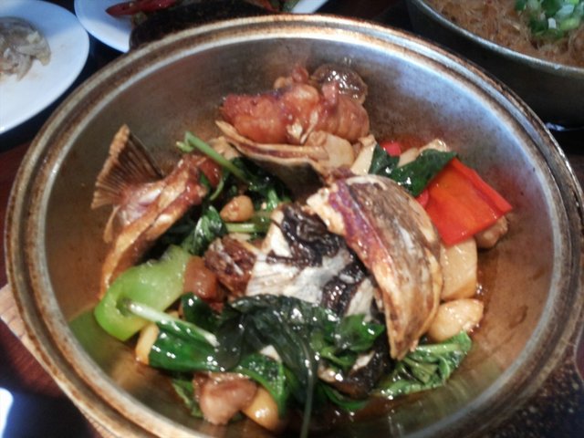 眷村牛筋腩煲红烧58元,上来的时候很烫,我平时超讨厌吃萝卜,因为食堂总做萝卜丝我都快吃疯了,不过这个萝卜做的有味道,有牛肉的味道,所以我吃了好几块,牛腩也非常香,喜欢那个带点筋的部分。