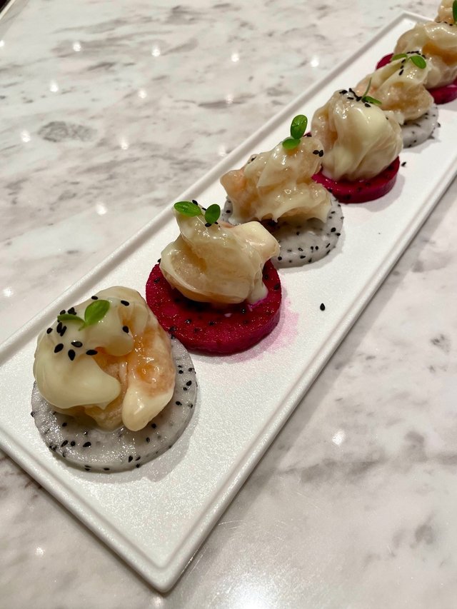 👇🏼鮮果沙拉蝦球¥128,很喜歡這道佳餚,蝦球爽口,沙拉醬好味,火龍果健康
