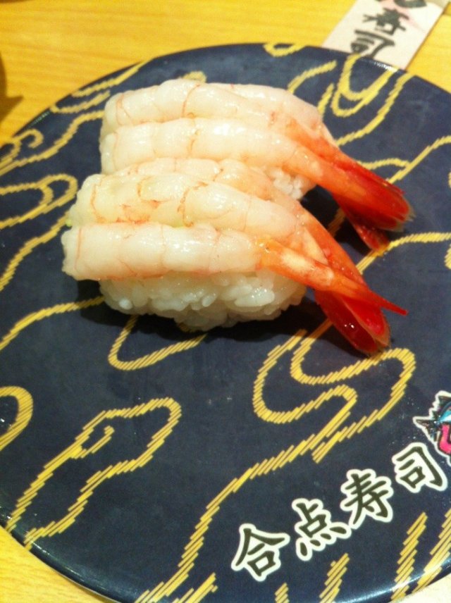 【舔虾寿司】:虾仁非常的新鲜,个头恰到好处,入口丝丝嫩滑,肉质非常的细腻,口感很不错哟!
