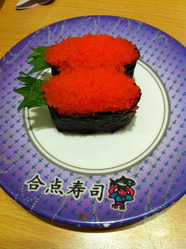 【鱼子寿司】:鱼子酱超级多的哟,入口马上都化开了,一个个小鱼子被咬爆的感觉非常的刺激,爽!很好吃!