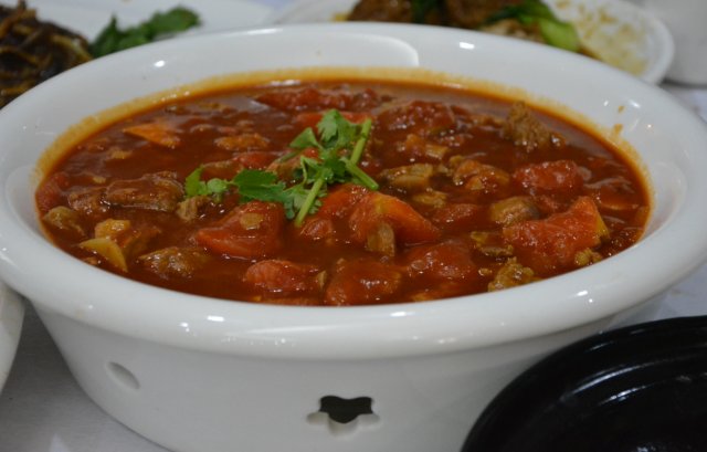 另外一个番茄牛腩,点的非常成功呀。酸酸甜甜的下饭菜,牛腩炖的特别的烂。就是虽然看着很大一盘子,实际上平盘特别浅…