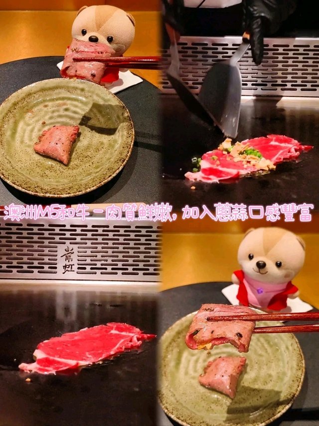 色澤紅潤的肉肉,看得到的是新鮮欵。這個可自選肉肉熟度,7成熟的口感剛好。牛肉包著蔥花吃起來口感豐富,肉質鮮嫰牛味重。