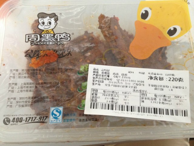 这家店开在武宁路101号我格广场的B1楼,地方还是蛮好找的,柜面很大。我格广场的B1层是美食层吃的东西还是很多的,最爱的还是周黑鸭他们家的卤味。他们家柜台里放了很多种类的鸭制品,每份都是称好分量独立盒装的,这点看着就很干净卫生。最喜欢的是鸭翅膀,19.9元1盒,最少5个鸭全翅,价格还算适中。现在袋子要收0.1元,估计是懒得找钱了。店员挺不错的,装袋的时候还会给你一次性手套,回家吃起来也很方便。鸭翅膀卤的很入味,他们家的微辣比较偏辣,花椒蛮多的,所以入口辣辣麻麻的很好吃,而且他们家的口味偏甜,很适合我的口味。鸭翅膀很酥,吃起来不是很费力,这点也很赞。总的来说,这家店的性价比挺高的,下次可以尝试下素菜,应该也不赖。