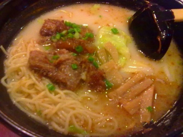 味千拉面 Niceyui等级42013-12-3112 浏览 关注 前几年来吃过 想来那次是我第一次吃味千 也是最后一次吃 学生狗的时候觉得味千太高大上了有木有 终于尝到之后真的不要太失望 很一般的味道 汤底很明显的浓汤宝→_→ 虽然浓汤宝味道确实很不错 面的分量看起来一般 不过也够吃了 喜欢里面的木耳丝 配着白味的面吃起来口感还不错 还点了一个肥牛定食 其实就是盖浇饭的感觉 肥牛比较少 饭因为有酱油饭即视感所以也不难吃 之后在超市发现味千那种面面 结果回家煮了之后味道就是一样的好么 所以以后想吃都直接超市买吧 以上食记乃用户个人意见 , 并不代表OpenRice之观点。赞好分享味千拉面 味千拉面 https://s.openrice.com/KtLT3G0Uny4W0检举 张贴 评分3味道4环境4服务4卫生3抵食