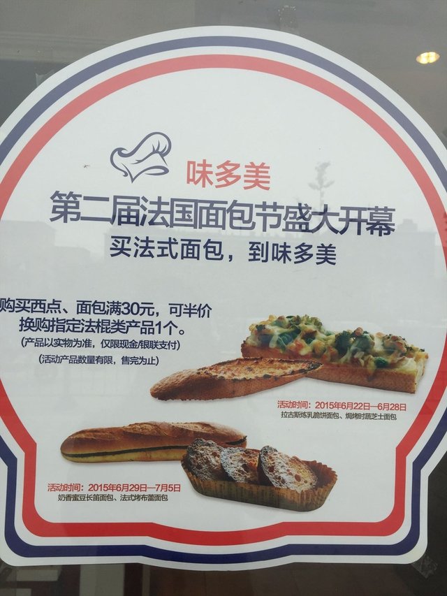 味多美 烦恼不是烦恼等级32015-06-255 views Follow 这家味多美的地址是安定路安贞里2区605号(安贞桥西北侧),昨天下午去了他家,发现了这个新品,感觉还是不错的,就买了一份,一份有3个小小的法棍段,价格是6元也觉得比较合理的,不过真的好不好吃,觉得就是把普通法棍切一下然后烤了,不值得这个价格,不推荐。感觉当做赠品还不错,买实在不划算烤法棍¥6The above review is the personal opinion of a user which does not represent OpenRice's point of view.LikeShare味多美 味多美 https://s.openrice.com/KtLT1m03LSF00Report Post Ratings1Taste1Decor1Service1Hygiene1ValueDining Method堂食