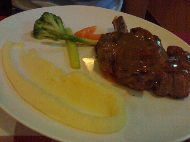 grilled veal rack(248):这个量蛮大的,菜单上看有300g,bf吃下去其他基本吃不下了。要了5分熟,不过觉得还是有点老,应该3分就可以了。配菜是土豆泥和芦笋。值得一提的是,这家店的土豆制品都不错,特别是这个土豆泥,有点奶香味,很好吃。