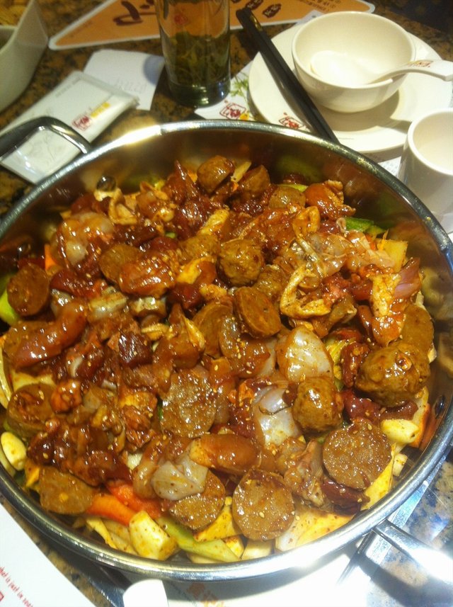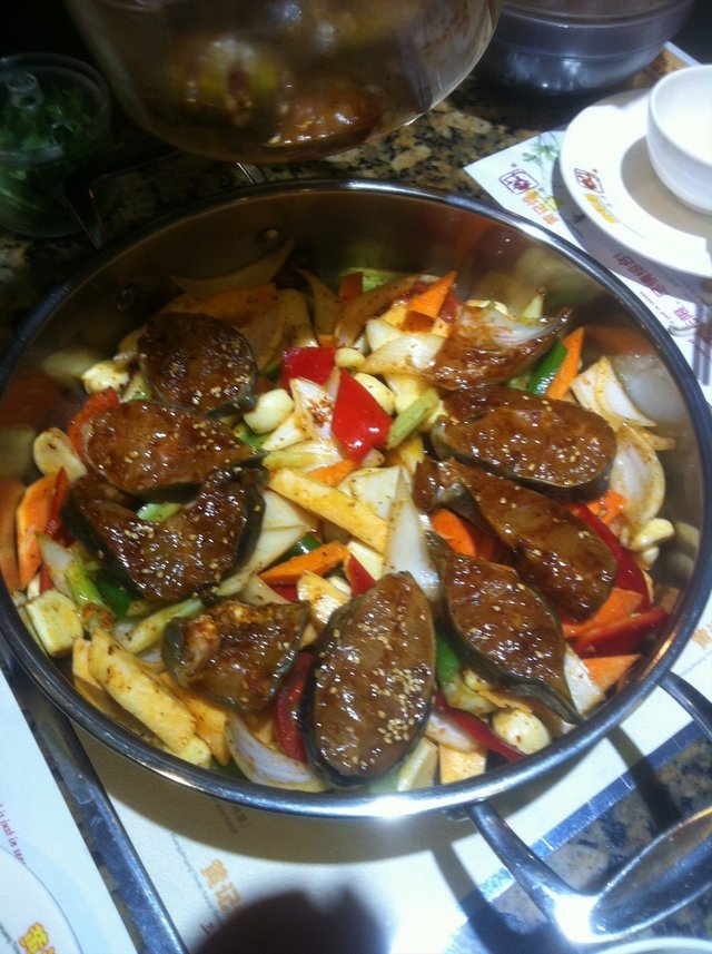 工作日的晚上,人不是很多,我们因为之前预约过,8个人吃还是人比较多的,点了2个组合锅,一个以牛肉牛蛙为主的肉锅,一个以鲶鱼回鱼虾等海鲜为主的海鲜锅,味道都不错,他家的特色就是焖烧锅,所以味道自然还是不错的,在进店门口那里有鲜活的青冈鱼摆设放在那里,感觉食材很新鲜,东西品质很棒!~~