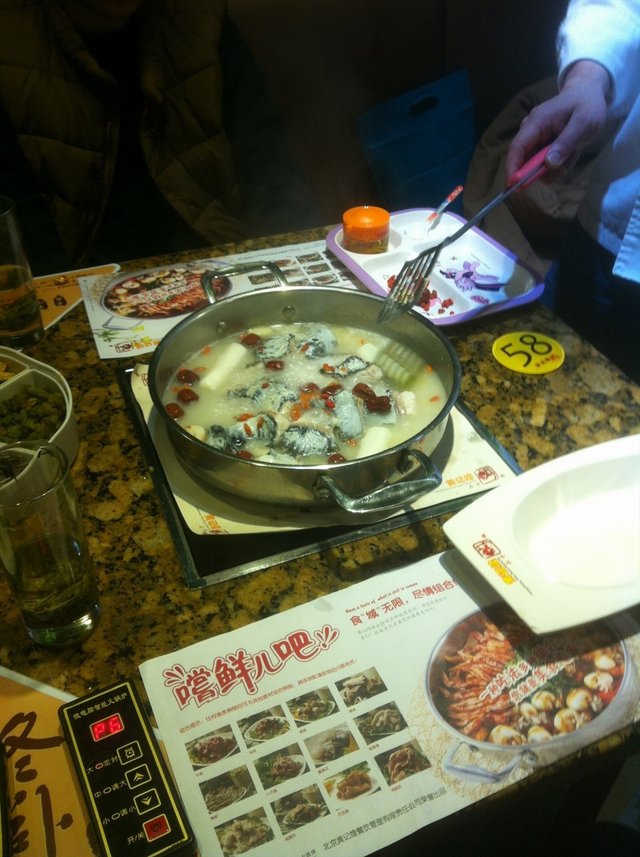 他家的东西还是偏咸了点,不过东西品质还是真不错,后来又点了个鱼汤上来是现做的,看着没放什么调料,但吃起来口感鱼很嫩汤很鲜,对食材很有讲究,东西不好的话做不出那么好的东西来!~~他家的牛蛙牛肉也是不一样的,口感好,不是我们一般市场上买的到的,东西不错!~~