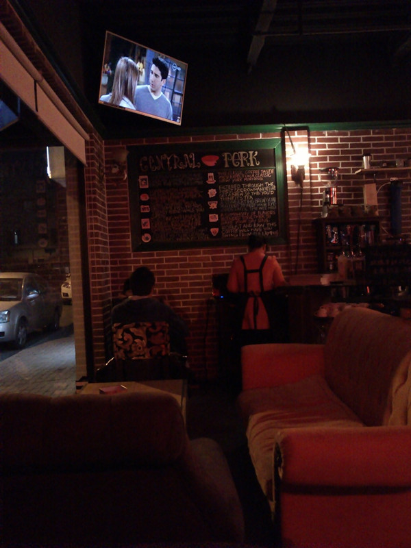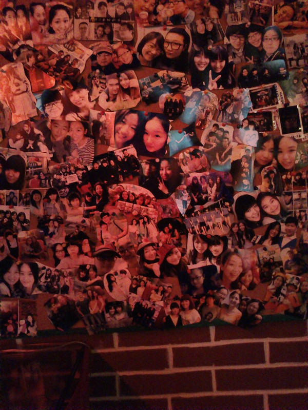 开门进去 就是暗红的光线 墙上FRIENDS的灯饰 左面布置了很多名人的照片
