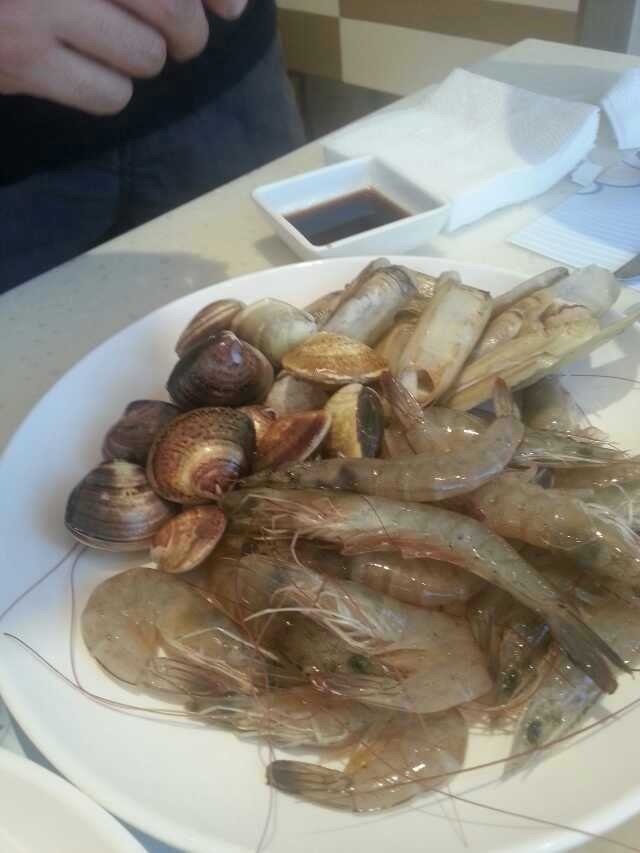 地方很大,环境很优雅,沙发是软沙发,大厅布局很清爽,一进门让人很舒适,黑色马赛克的台面上整齐的排列着这种菜品,生菜、热菜、海鲜、粘料、水果、甜品都分区摆放整齐了,他们家特色是既可以吃烧烤又可以吃熟菜,想吃铁板烧的话也是可以的, 烤鱿鱼需要蘸好吃的酱!蛋挞和鸡翅还可以 ,不过是限量的,有点不过瘾,一烧烤为主,就是肉类不是很多,烤五花肉是不错的,肉很新鲜,味道也很香,就是量少了点,老是去拿又很麻烦,就这么吃吃吧,水果和甜点要趁早拿,不然就没有了,总体来说还是不错的。