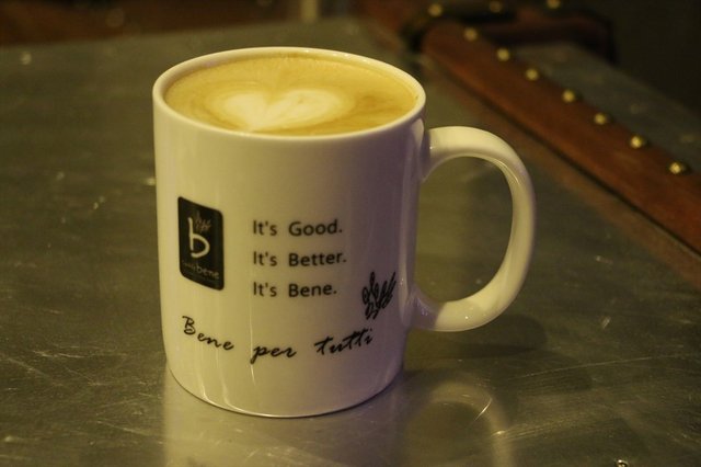 摩卡,上面有多多的奶油,但是不腻,很多咖啡馆为了省事已经不在上面加奶油了,但是bene这一点还比较好的,摩卡味道也很好,比拿铁和卡布奇诺要甜一点。