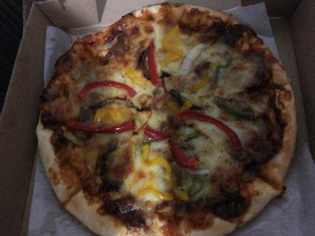 来说下吃的吧,因为之前已经吃过榴莲披萨了,所以这次选的是新品“辣牛肉披萨”,老妈说这个披萨很好吃,虽然带回家还是凉了,但是味道仍旧是很香的,微微有些辣,怕吃辣的人也是可以吃的。
