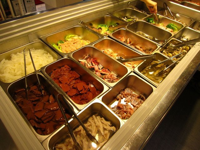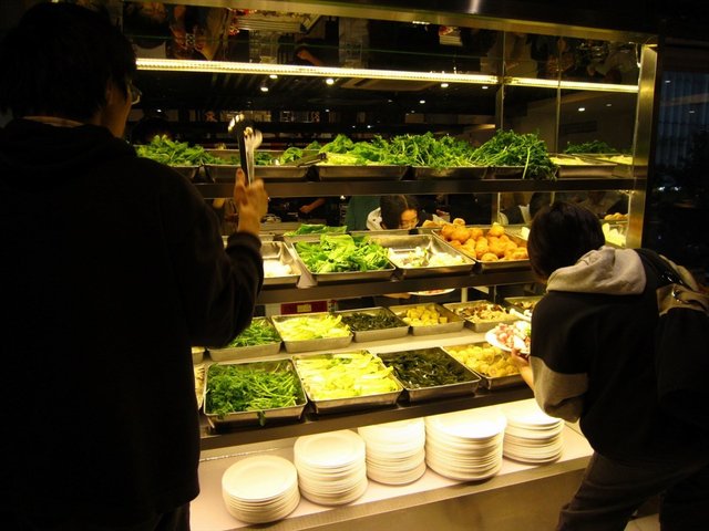 取食材分了两个区,食物包括蔬菜肉类和饮料都在一边,调料则在另外一边。