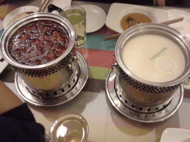 菌汤锅比较淡,麻辣牛油锅还蛮辣的味道很大,还有一个椰浆锅味道还可以椰浆很浓就是有些咸。